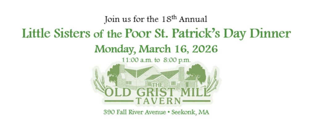 We look forward to seeing you at The Old Grist Mill Tavern for the annual Little Sisters of the Poor St. Patrick’s Day Fundraiser.